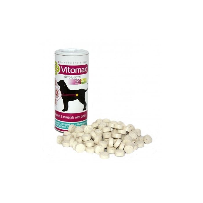 Харчова добавка з біотином для здоров’я шерсті собак Vitomax сприяє підтримці доглянутої та блискучої шерсті улюбленця. Біотин – необхідний для здоров’я шерсті та має бути в щоденному раціоні вихованця.