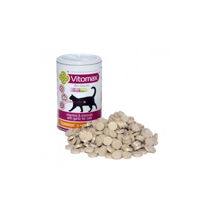 Вітамінно-мінеральний комплекс для котів Vitomax Бреверс з пивними дріжджами та часником підходить для регулярного застосування або прийому курсами.
