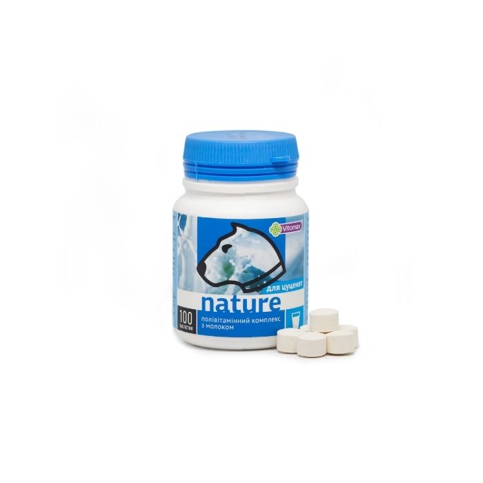 - Вітамінний комплекс Nature з молоком забезпечить здоров'я цуценяти, зміцнивши імунітет, подбає про стан зубів, покращить стан шкіри та шерсті, надасть енергійності, забезпечить стабільний набір ваги. Крім того, після активних прогулянок обов'язково з'явиться чудовий апетит.