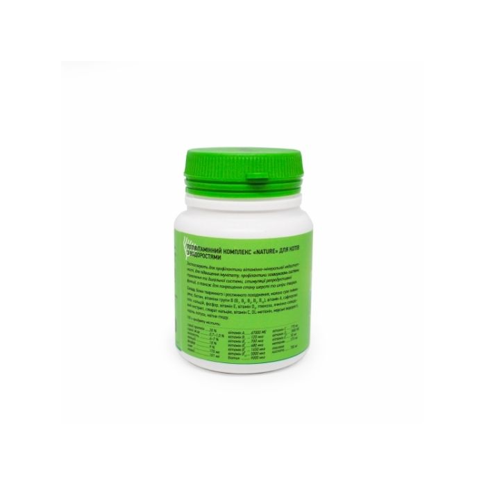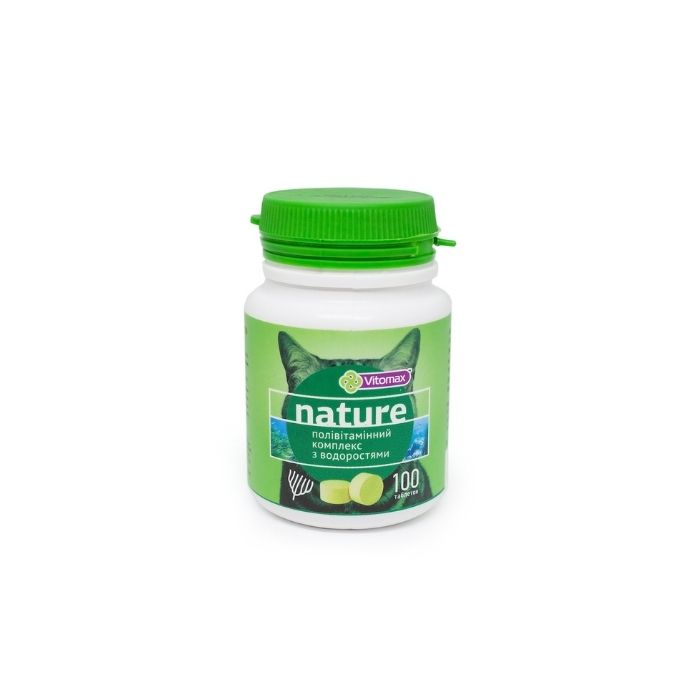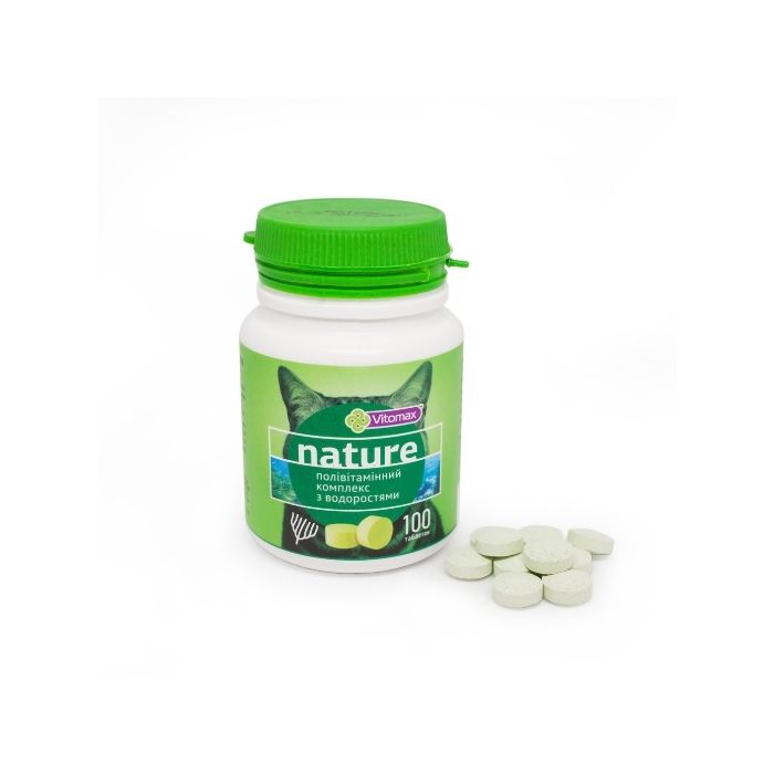 Полівітамінний комплекс для котів Vitomax Nature зі смаком водоростей – спеціально розроблена збалансована формула мультивітамінного комплексу має лікувально-профілактичний ефект при дефіциті вітамінів (групи B, А, Е, С, D3) та мінералів. Знежирене сухе молоко містить багато білків і мало жирів. Пивні дріжджі цілюще впливають на обмін речовин, покращують травлення та зміцнюють нервову систему. Вживання комплексу забезпечить котика енергією та поверне доглянутий вигляд.