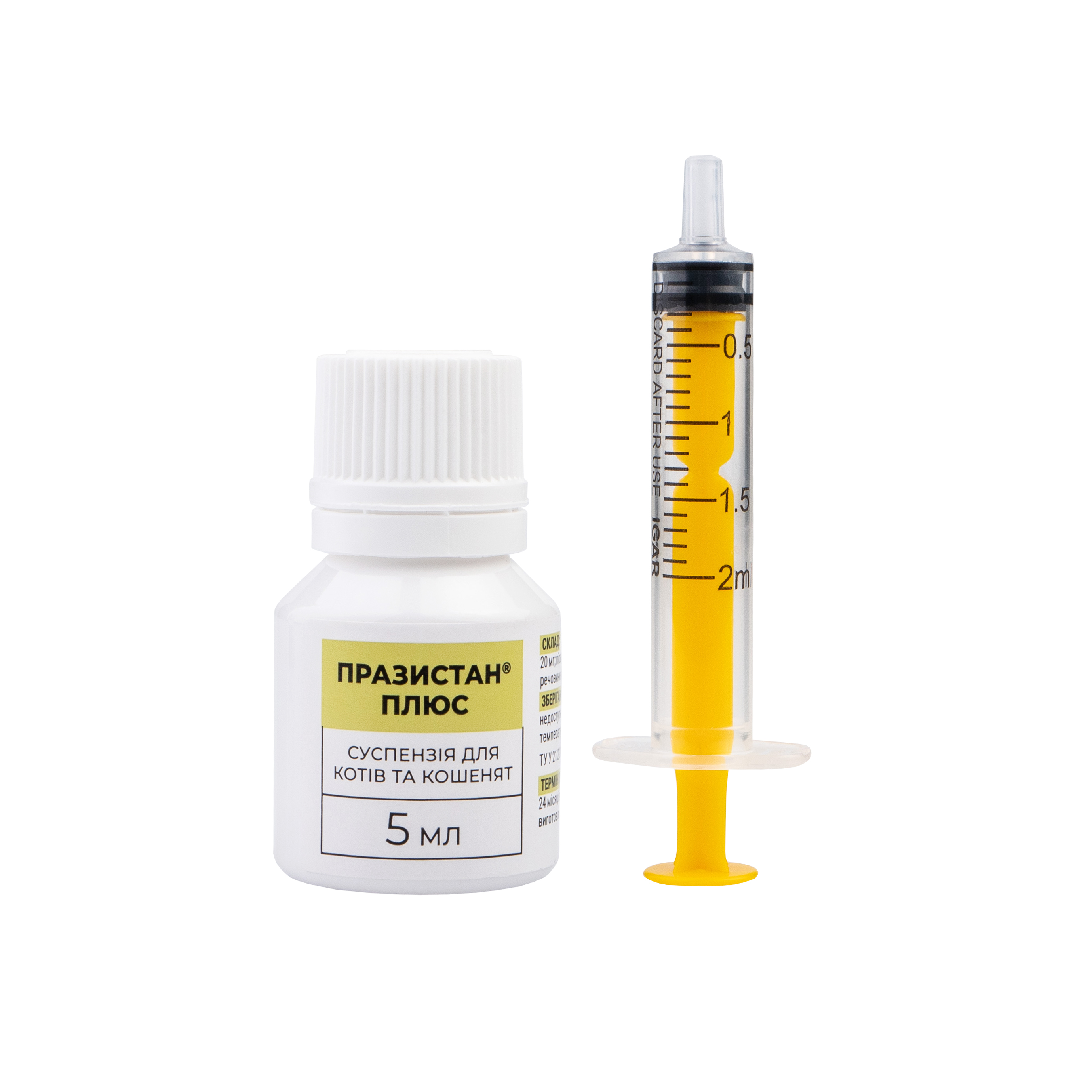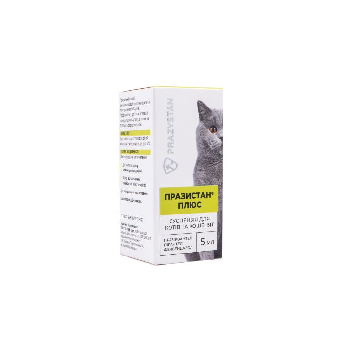 - Празистан Плюс – комбінований препарат, до складу якого входять пірантел памоат, празиквантел і фенбендазол. Дія препарату зумовлена дією вищевказаних компонентів, які забезпечують широкий спектр антигельмінтної дії на всі фази розвитку круглих і стрічкових гельмінтів, що паразитують у котів. За рахунок фенбендазолу препарат працює проти шлунково-кишкових і легеневих нематод, трематод і цестод, а також має овіцидну дію (знищує яйця гельмінтів), що зменшує ймовірність перезараження тварин.