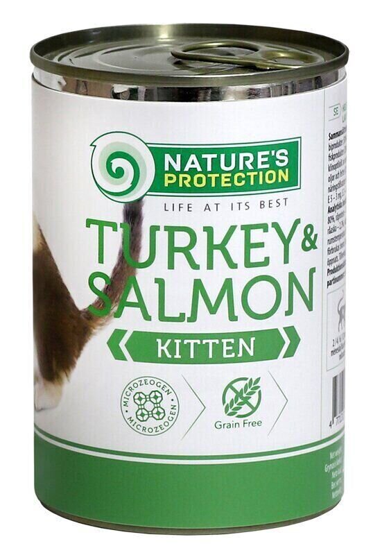 Nature's Protection Turkey and Salmon for Kitten – це вологий корм супер преміум класу для молодих кошенят з індичатиною та лососем, доповнений мінералами. Цей корм слугуватиме ідеальним доповнення до харчування сухим кормом Nature's Protection.