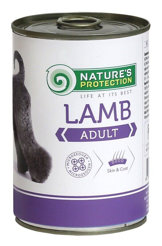 Nature's Protection – це консервований корм супер-преміум класу для дорослих собак усіх порід із ягнятиною, подається у смачному бульйоні та доповнений мінералами. Основним джерелом білка є якісна ягнятина. Корм м'який і легко пережовується, а склад м'яса та бульйону добре засвоюються.