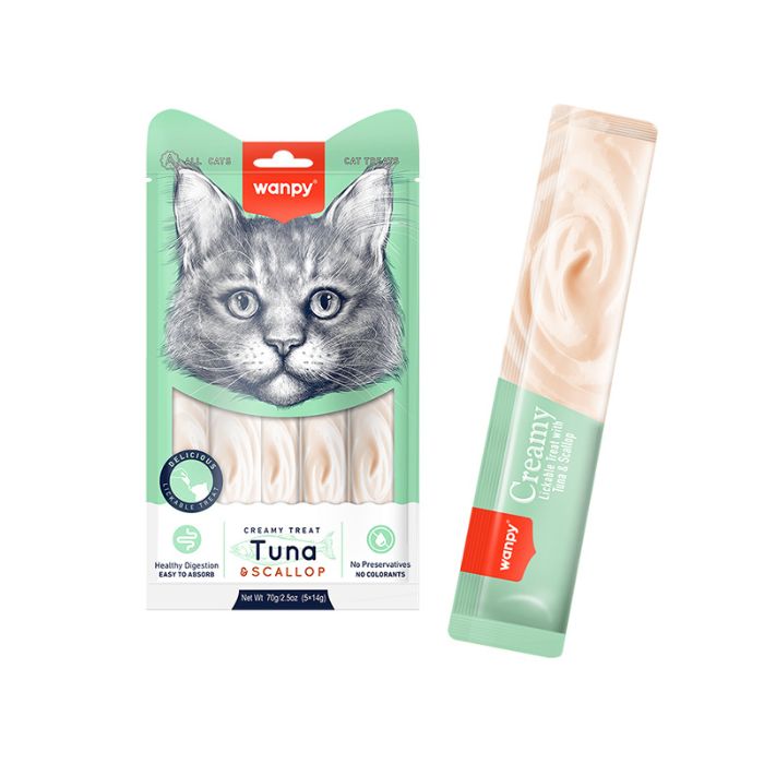 Кремові ласощі для котів з тунцем і морським гребінцем Wanpy Creamy Treat Tuna & Scallop – це корисний і смачний продукт для вашого улюбленця.