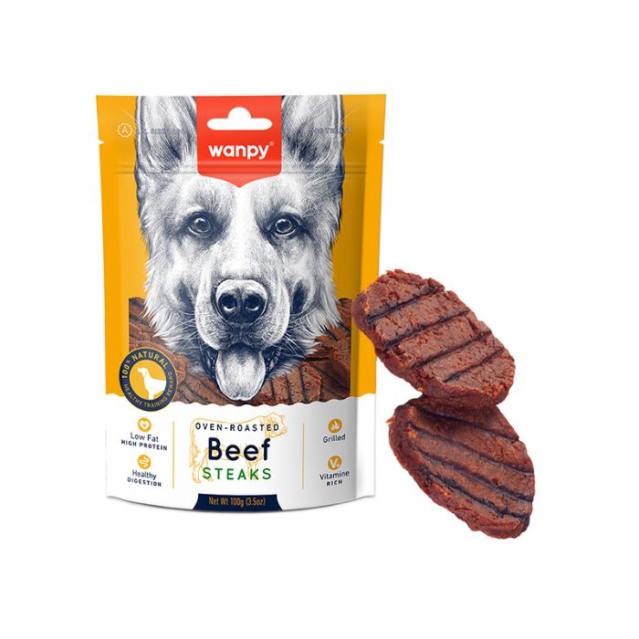 Ласощі для собак у формі стейка з яловичини Wanpy Grilled Beef Steak Стейк – це натуральний продукт, корисний і смачний для вашого улюбленця.