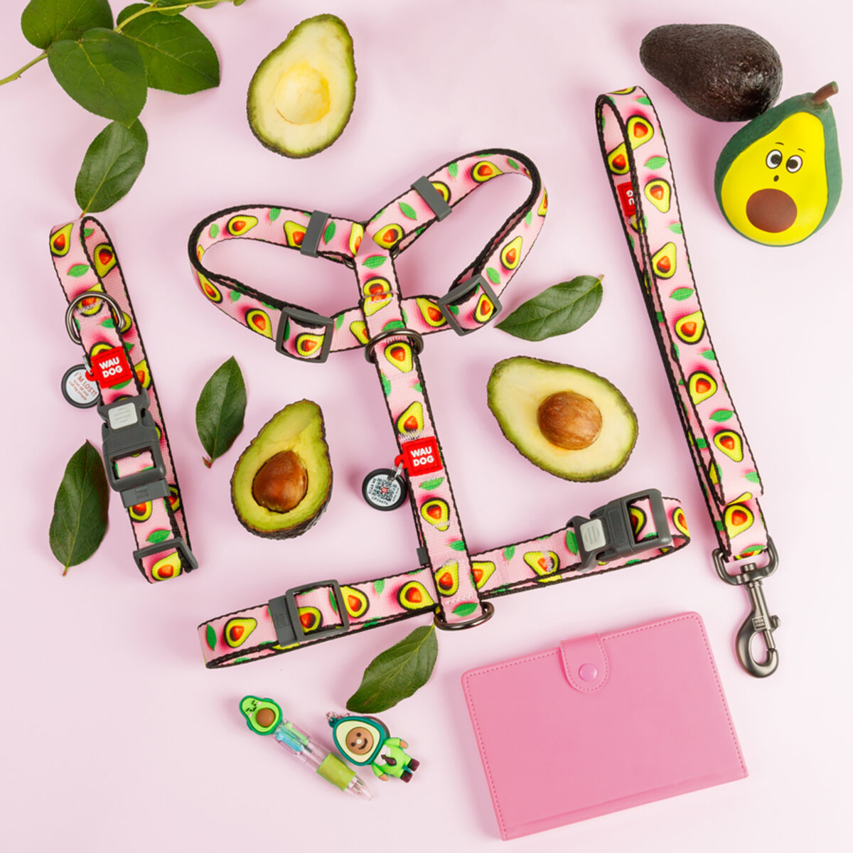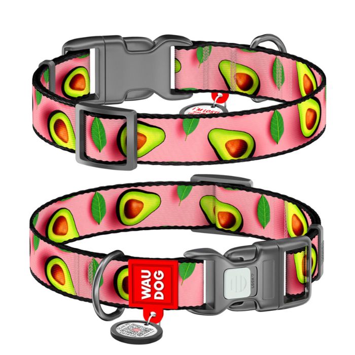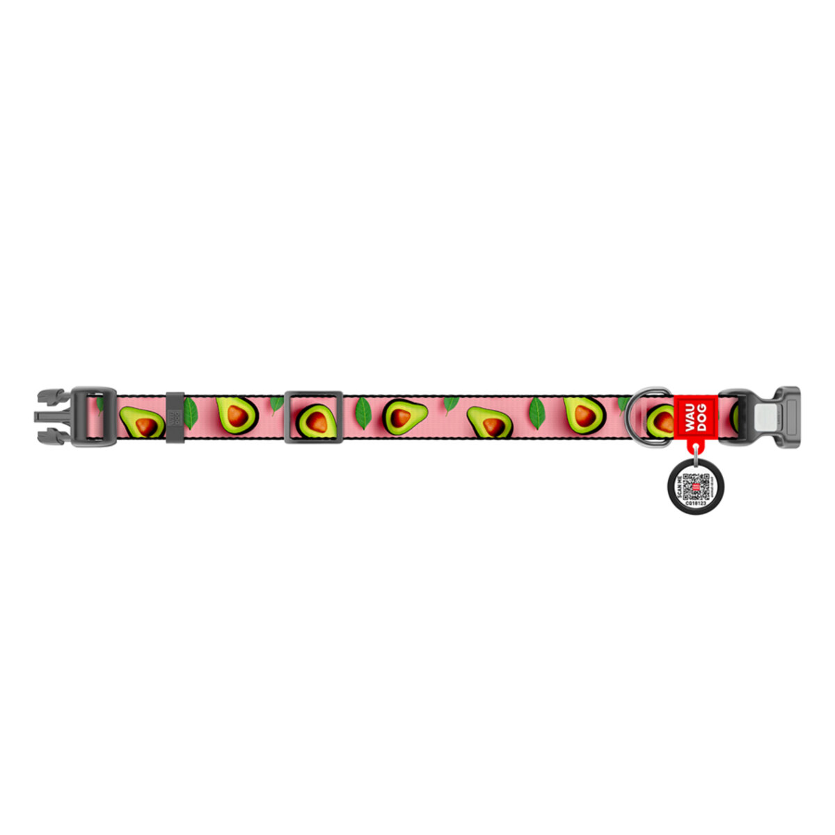 WAUDOG Нашийник для собак нейлоновий з QR паспортом, "Авокадо на рожевому", пластиковий фастекс, L, ширина 25 мм, довжина 33-49 см - 1