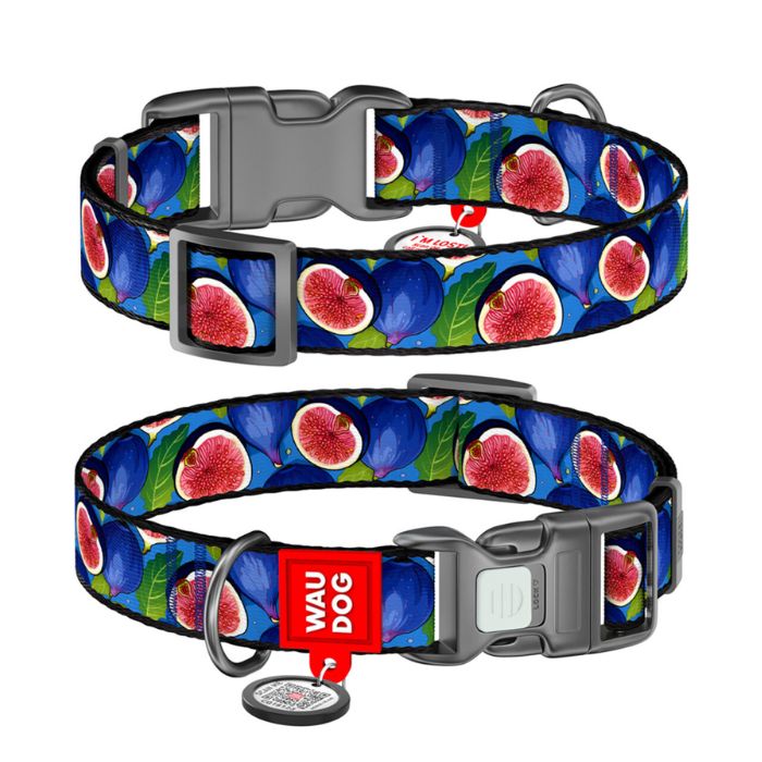WAUDOG Нашийник для собак нейлоновий з QR паспортом, "Інжир", пластиковий фастекс, М, ширина 20 мм, довжина 28-40 см