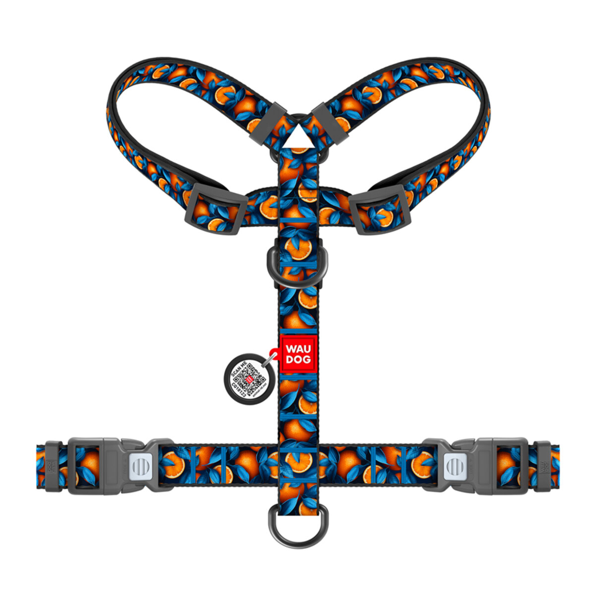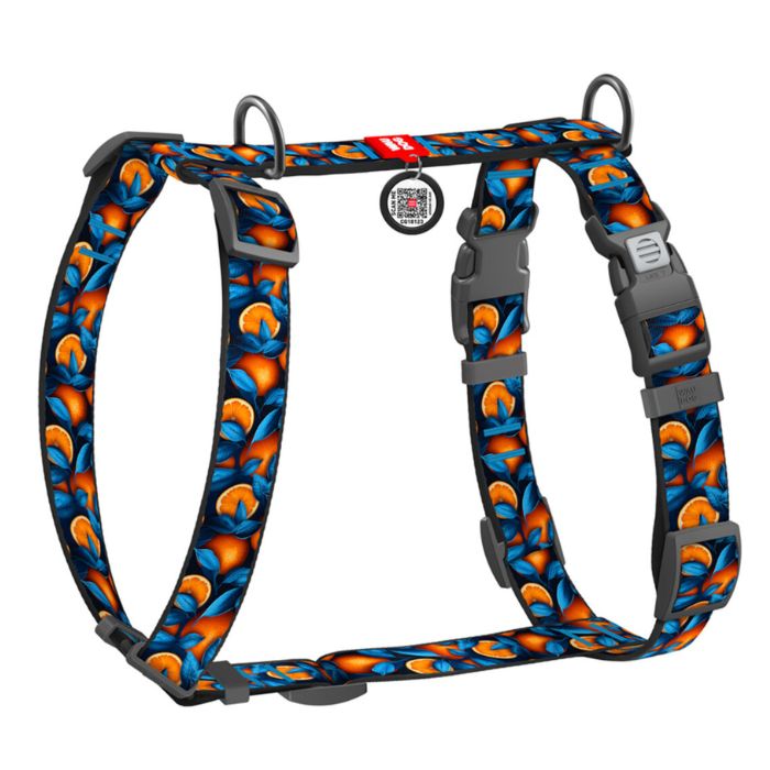 WAUDOG Шлея для собак нейлонова з QR паспортом, "Апельсини", пластиковий фастекс, S