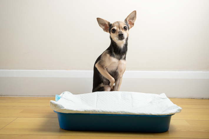 Для початку необхідно визначити місце, в яке цуценя ходитиме. Бажано, щоб це був куточок у ванній чи туалеті, де на підлозі постільний не паркет чи ламінат, а кахель чи лінолеум. Важливо розуміти, що це має бути затишний непрохідний куточок, де собаку ніхто не відволікатиме. На обране місце кладеться пелюшка (можна прямо на підлогу, але в ідеалі в просторий лоток з невисоким бортиком), після чого починається процес привчання.