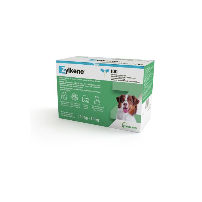 Zylkene (Зілкене) в капсулах – це натуральний продукт, який отримують із молочного білка, що міститься в молоці (тієї ж молекули, яка допомагає немовлятам розслабитися після годування молоком). Активний інгрідієнт – пептид (молекули білка), що здатний тимчасово пов'язувати певні рецептори в головному мозку. Капсули Зілкене мають заспокійливу дію, схожу з транквілізаторами, але без побічних ефектів (сонливість, втрата координації тощо). Ефективність прийому препарату у собак і кішок доведена клінічними дослідженнями.